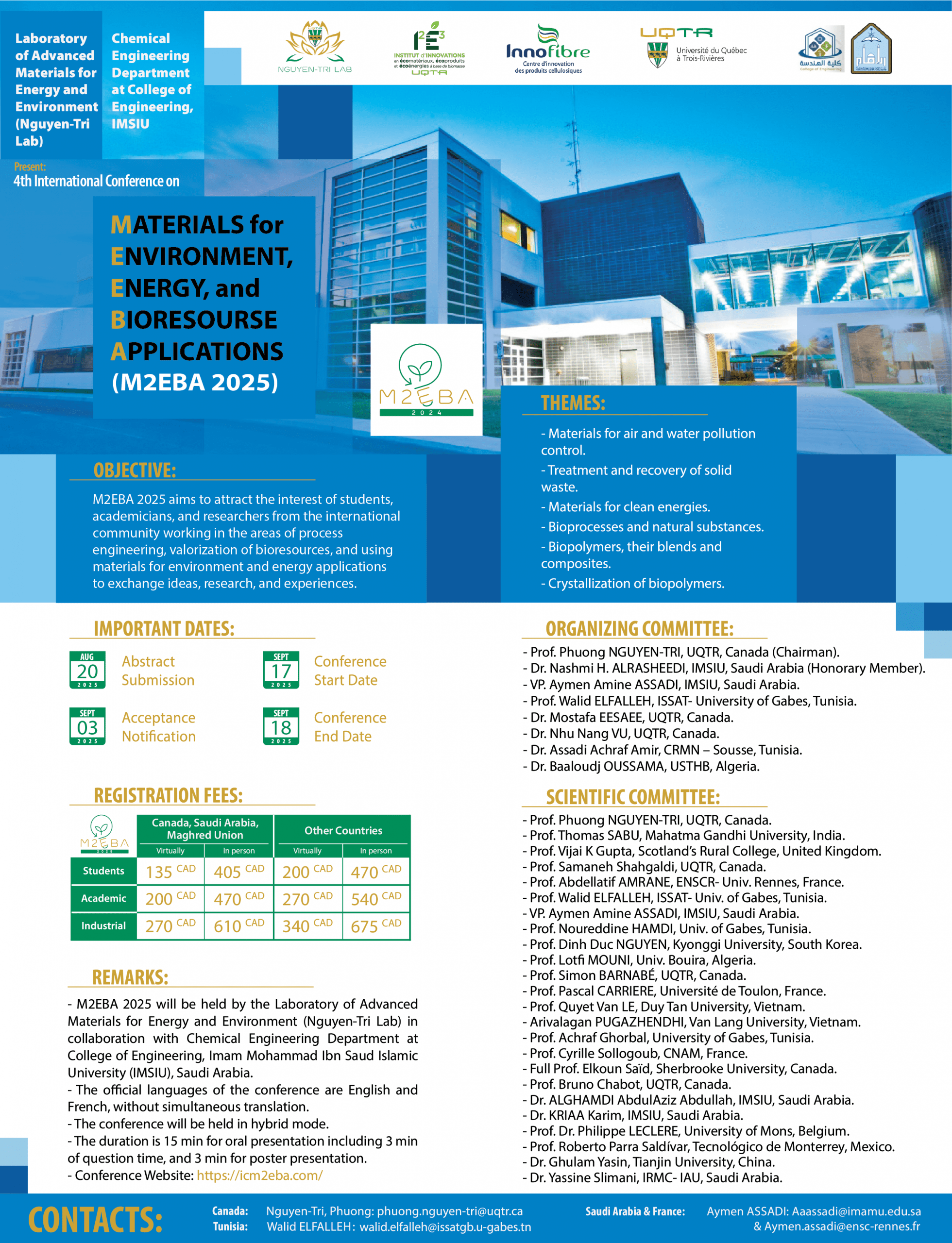 You are invited to submit your manuscript at any time before the submission deadline. For any inquiries about the appropriateness of contribution topics, please contact Phuong Nguyen-Tri via Phuong.Nguyen-Tri@uqtr.ca.